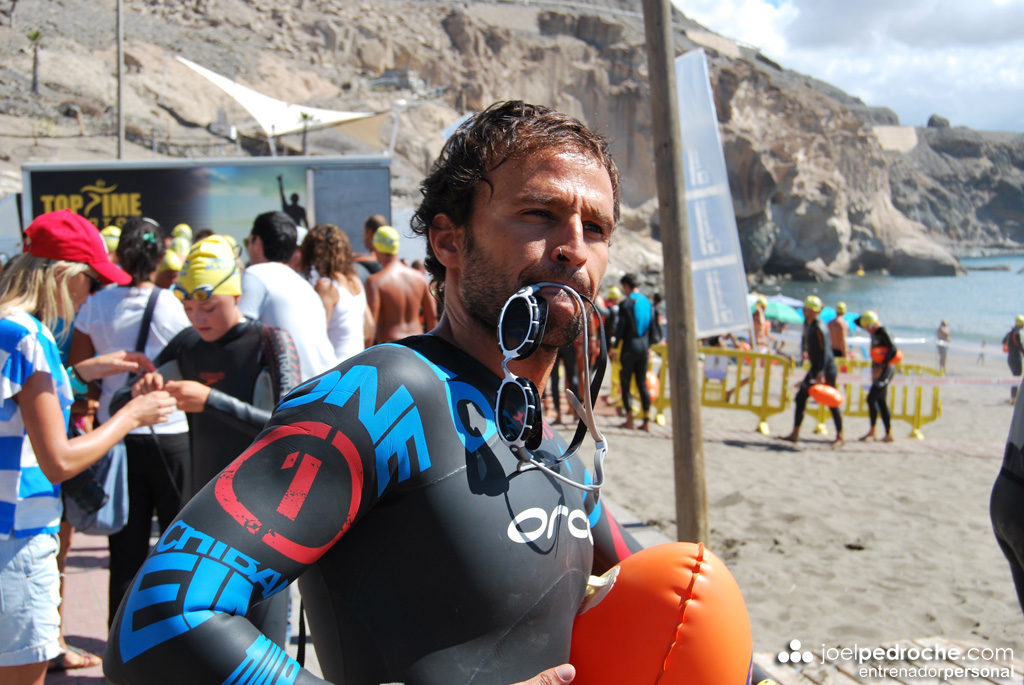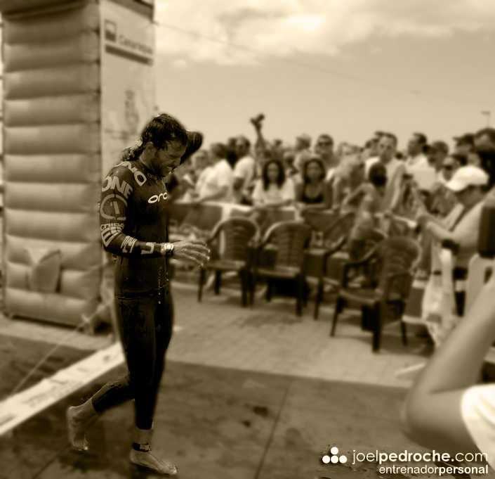 Retomando la crónica, en ese momento una cosa llevó a la otra y Berni acabó vomitando y encontrándose cada vez más mareado, llegando incluso a pensar en retirarse. Sin embargo, en este punto su mente le ganó la partida al sufrimiento y siguió nadando. No estaba fatigado, tenía energía para continuar pero el mareo no desaparecía. En estas circunstancias, llegar a meta tuvo más valor que si las condiciones hubieran sido idóneas.